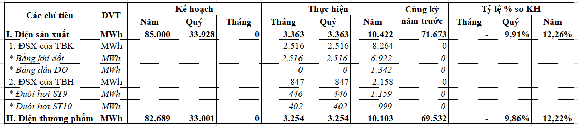 Sản lượng điện tháng 4 năm 2025