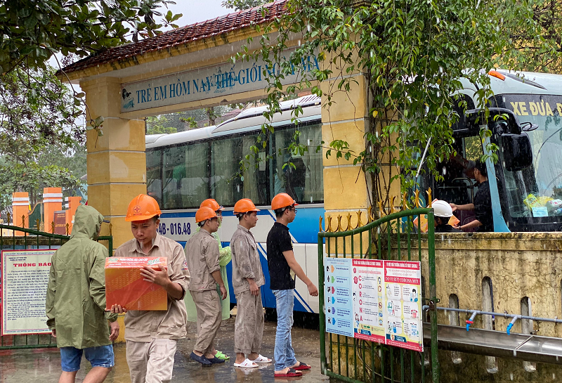 Rời khỏi rốn lũ huyện Lệ Thủy, tỉnh Quảng Bình, chuyến xe với hơn 30 CBCNV thuộc Tổng Công ty Phát điện 3 lại tiếp tục hành trình nhân ái đến với huyện Tuyên Hóa để tiếp sức cùng các cô trò Trường Mầm non Thuận Hóa vượt qua khó khăn do bão lũ gây ra những ngày qua.