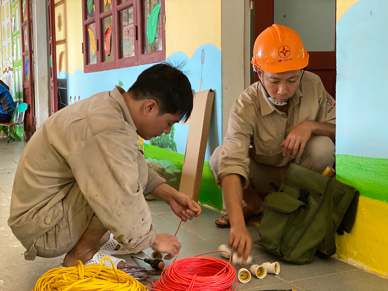 Nước vừa rút, đoàn cứu trợ của EVNGENCO 3 cũng vừa đến để giúp nhà trường sửa sang đường dây điện, thay mới những bóng đèn chiếu sáng và gửi trao những món quà nghĩa tình. Đây là những vật dụng hữu ích cho sinh hoạt cũng như công tác dạy và học của trường như: giường cho trẻ em, tập viết, bảng, phấn, bình lọc nước… Hy vọng với sự giúp đỡ này sẽ phần nào với bớt khó khăn trước mắt mà trường đang gặp phải, có thêm động lực để ổn định cuộc sống.