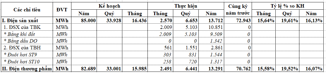 Sản lượng điện tháng 4 năm 2025