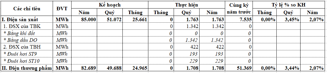 Sản lượng điện tháng 4 năm 2025